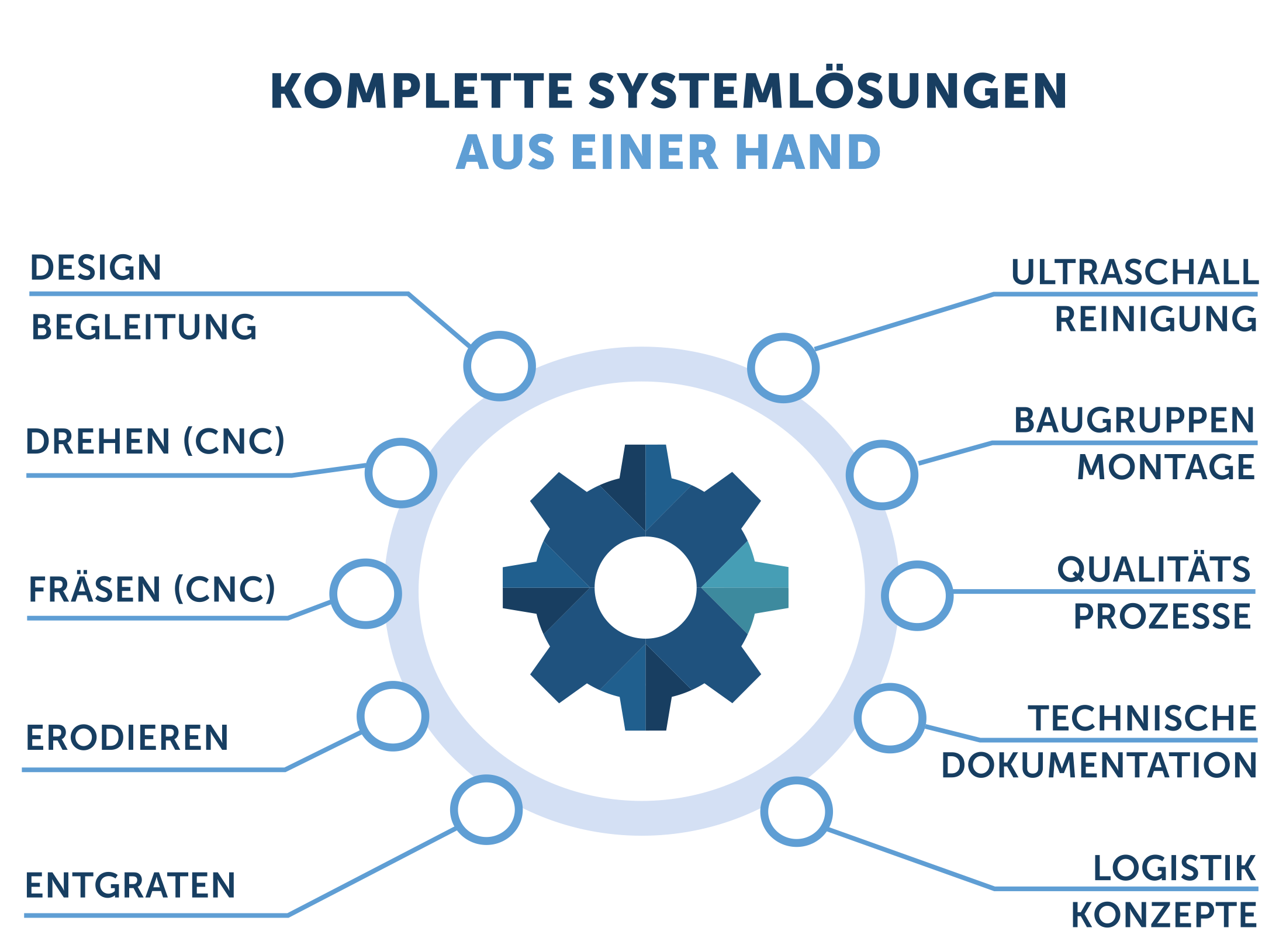 Als Komplettdienstleister rund um innovative, nachhaltige und dauerhafte Feinwerktechnik mit höchsten Qualitätsansprüchen ist unser Unternehmen Ihr perfekter strategischer Partner für die gesamte Wertschöpfungskette – von der Beratung und Entwicklung über automatisierte Serienfertigung bis zur einbaufertigen Baugruppe.
